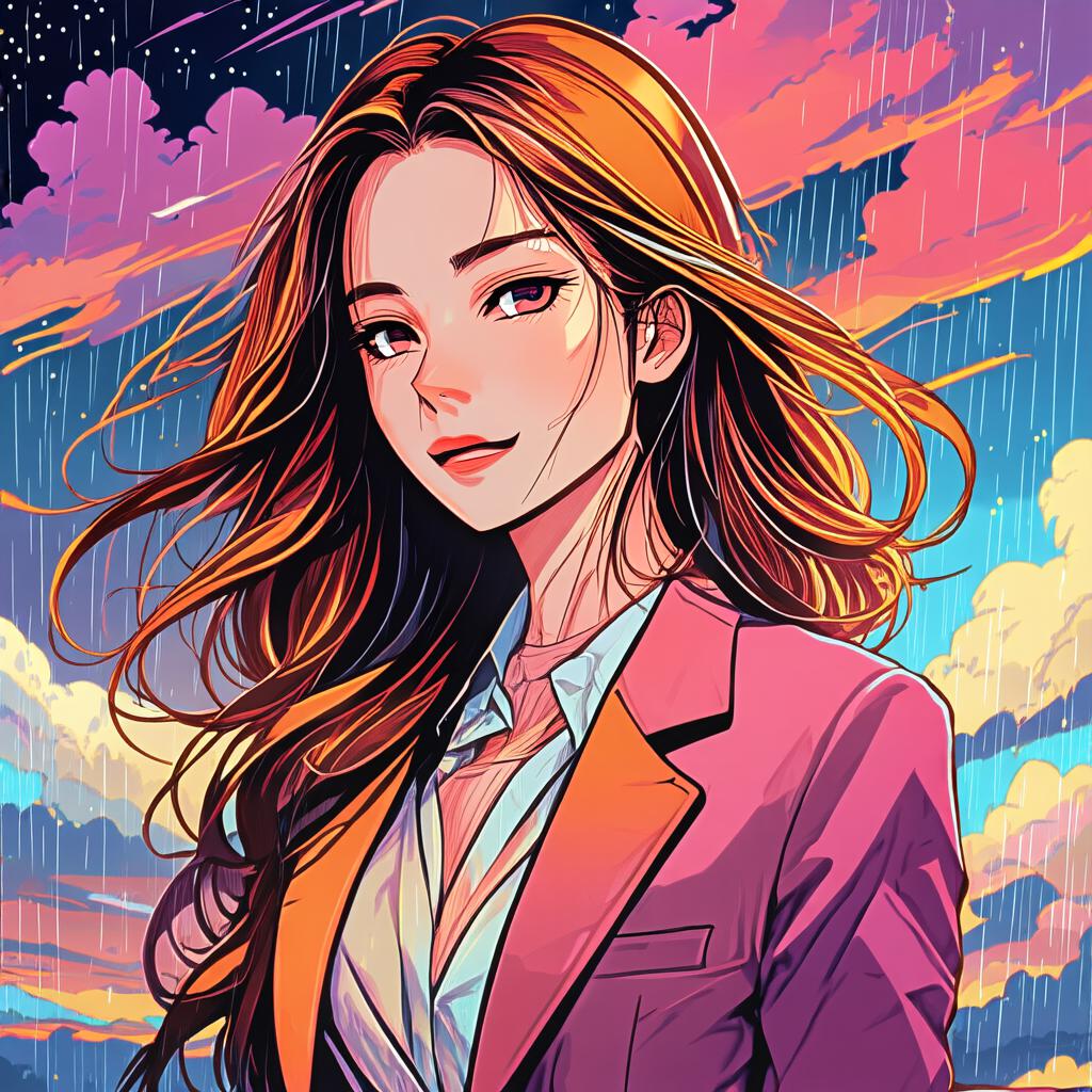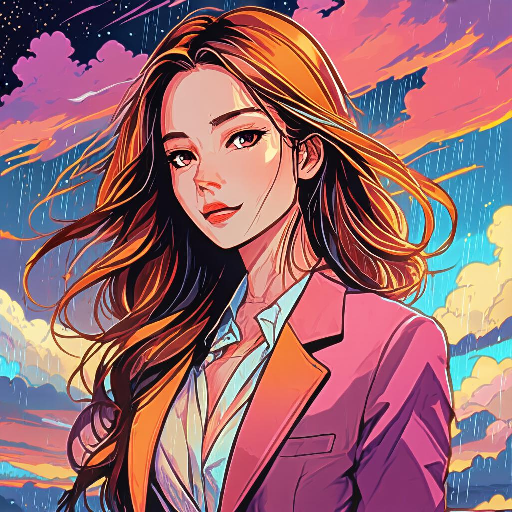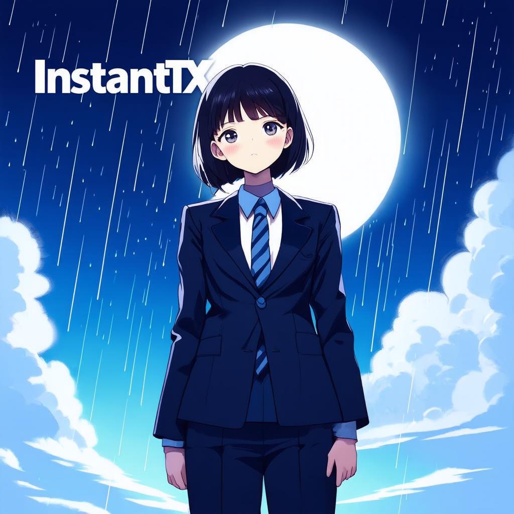 prompt = 'Anime style illustration of a girl wearing a suit. A moon in sky. In the background we see a big rain approaching. text "InstantX" on image'