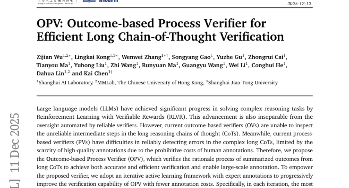 OPV: Outcome-based Process Verifier for Efficient Long Chain-of-Thought Verification
