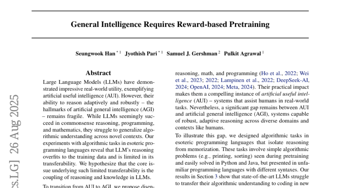 "fullname... | 2025-02-26T18:51:12 | General Reasoning Requires Learning to Reason from the Get-go | Large Language Models (LLMs) have demonstrated impressive real-world utility,