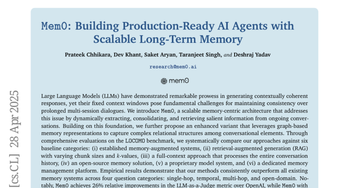 Mem0: Building Production-Ready AI Agents with Scalable Long-Term Memory