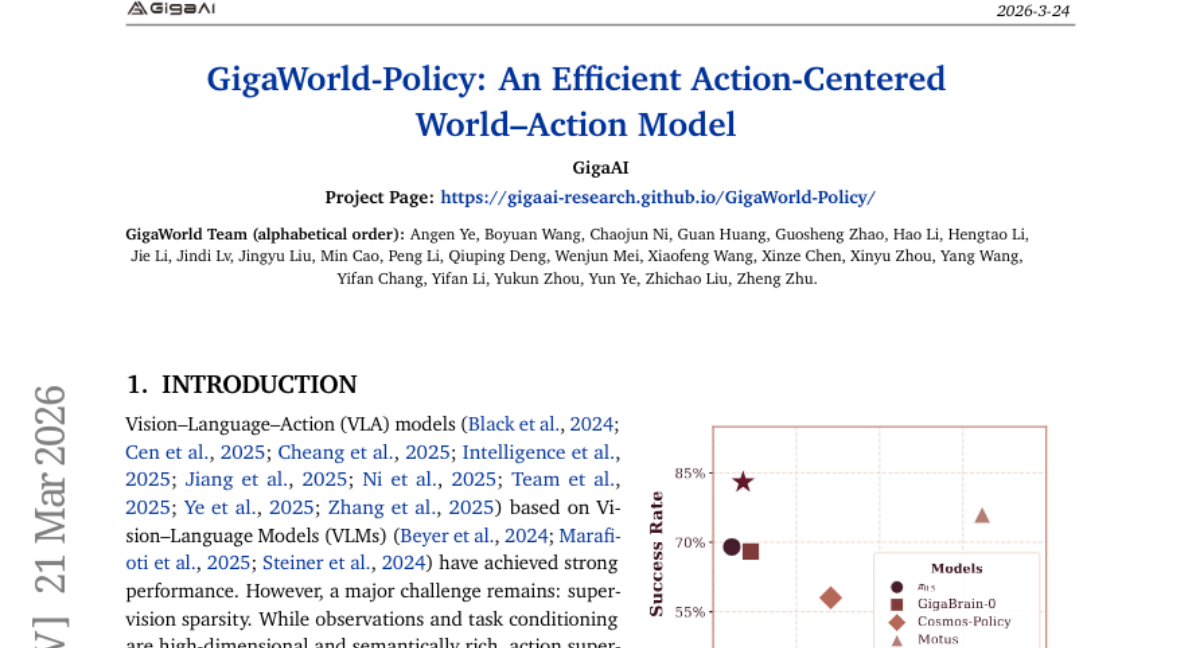 GigaWorld-Policy introduces an action-centered World-Action Model that improves robotic policy learning by decoupling visual and motion representations, enabling faster inference and better task performance through dual supervision from action prediction and video generation.