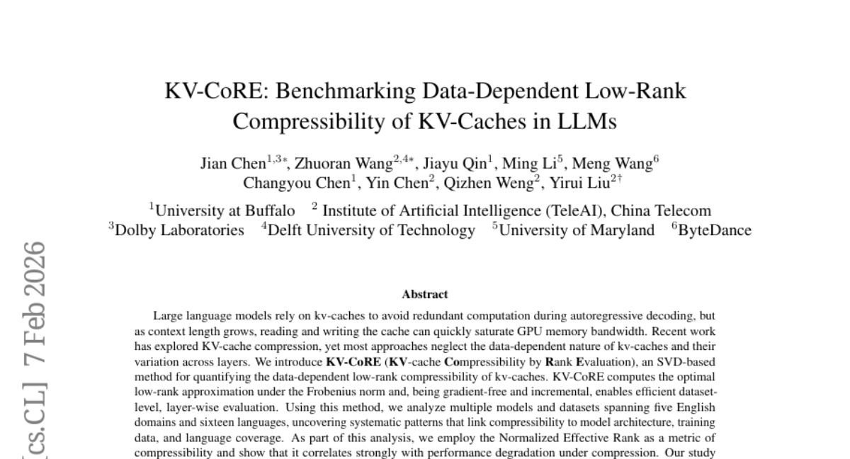 KV-CoRE: Benchmarking Data-Dependent Low-Rank Compressibility of KV-Caches in LLMs upvoted a paper about 1 month ago