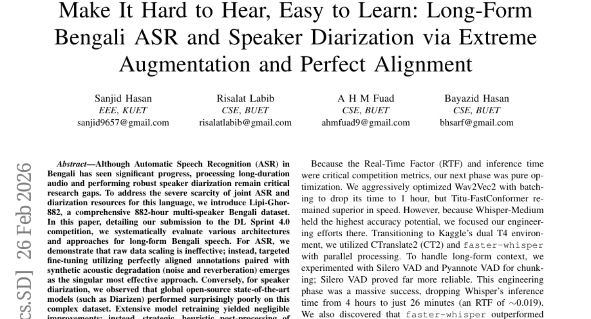 Make It Hard to Hear, Easy to Learn: Long-Form Bengali ASR and Speaker Diarization via Extreme Augmentation and Perfect Alignment